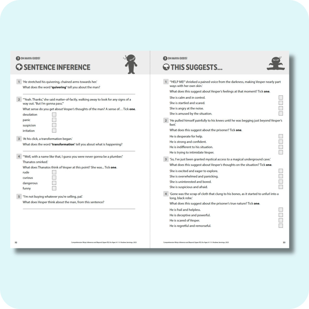 Comprehension Ninja: Inference and Beyond for Lower KS2 and Upper KS2 presents 24 high-quality non-fiction, fiction and poetry texts and photocopiable activities to help embed comprehension skills across the curriculum. With accompanying question sets that challenge pupils to effectively summarise, predict, and infer from the text, this practical resource will save teachers time and supercharge pupils’ reading comprehension skills. Difficulty increases through the book to enable teachers to meet the needs of pupils.
