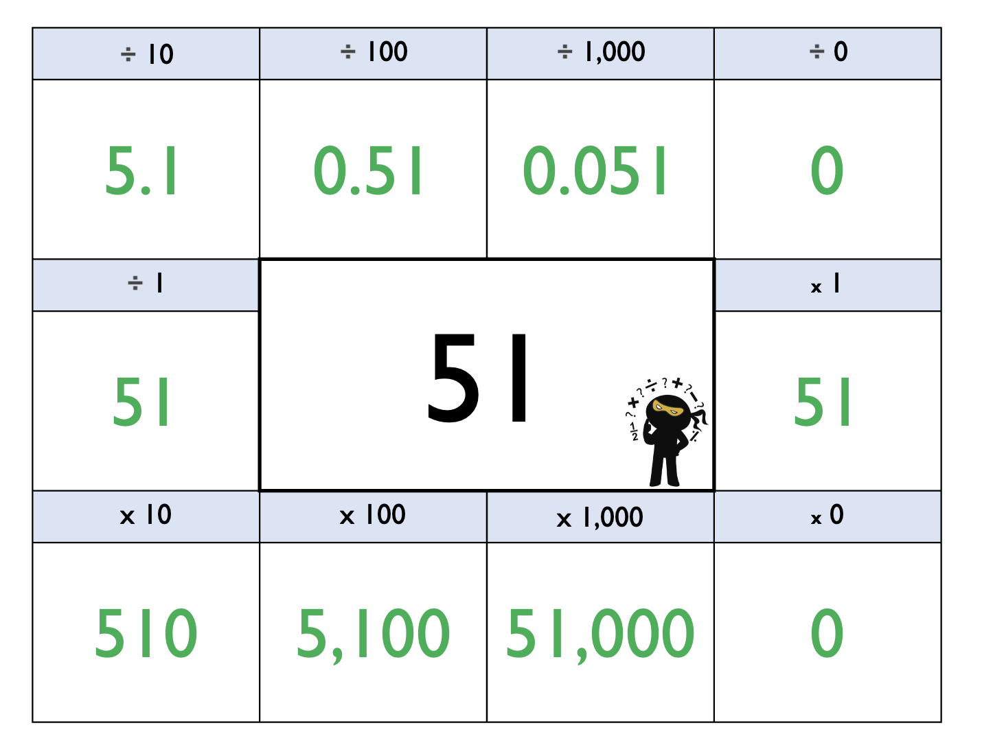 This bundle contains fluency grids that focus on multiplying and dividing by 10, 100 and 1,000! They are epic! Wonderful. This bundle has 63 slides and contains PDF and PPT versions. Complete with answer slides and multi-print slides for easy printing, trimming, and sticking.