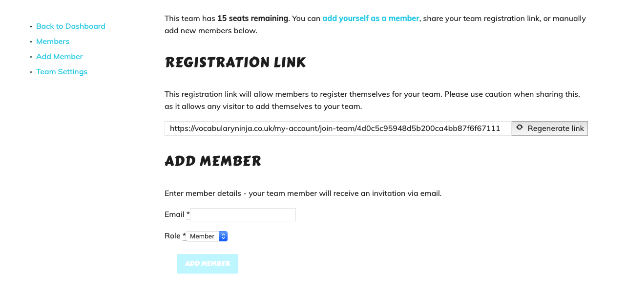 2) To add a team member, you need to subscribe using one of our subscriptions. To learn how to subscribe, click here. If you have subscribed to the ‘Single teacher user license‘ or ‘Parent‘ you will not be able to add team members.