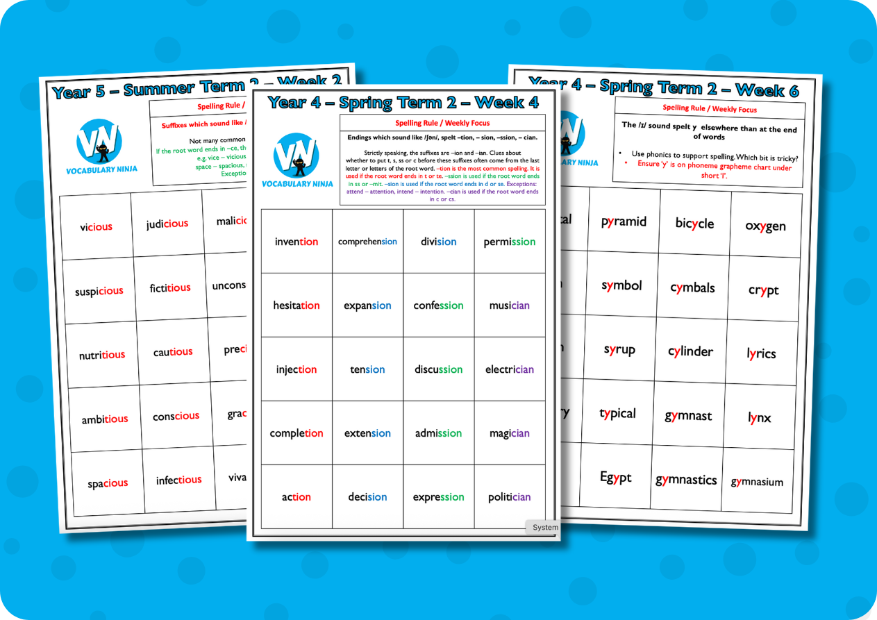 The Vocabulary Ninja Whole School Spelling System is a comprehensive spelling resource, which has been designed to save huge amounts of time, improve spelling outcomes and allow a consistent approach across the whole school. The resource is uncompromisingly simply, it is designed to take the time out of resourcing spelling. Each week has a 40 page spelling resource which includes everything you need to resource spelling and implement a consistent system and approach across the whole school.