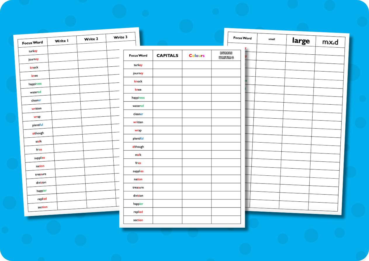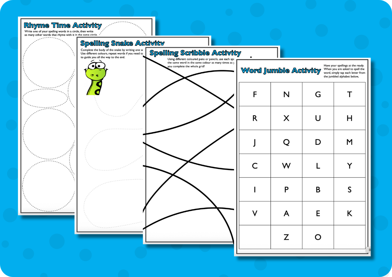 This section is standard in each pack and provides a multitude of different printable activities that you could give to pupils in your care. Each activity is simple to administer and helps keep the spelling routine in your class on a Tuesday, Wednesday and Thursday fresh and purposeful! Also great for homework, intervention and general spelling work.